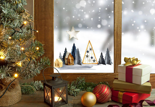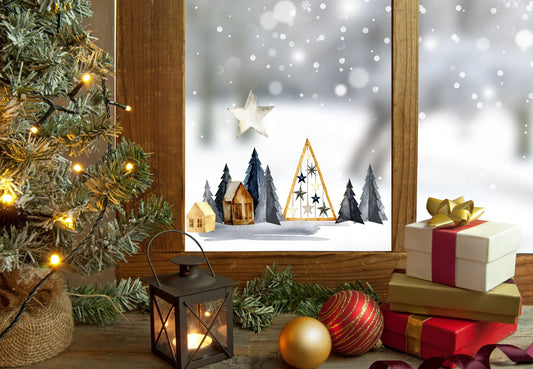 Bring the Magic Home with Double-Sided Reusable Christmas Scene Window Stickers!