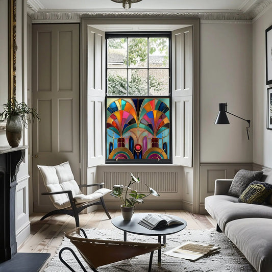 Art Deco Window Film: Aquilonia Stained Glass Decorative Window Film