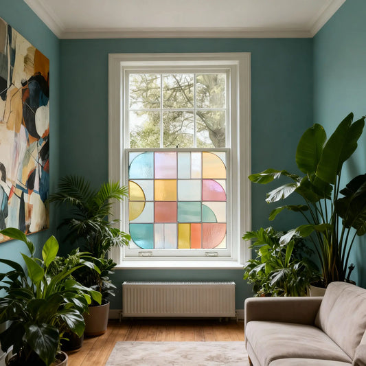 Art Deco Privacy Window Film: Geometric Stained Glass Style