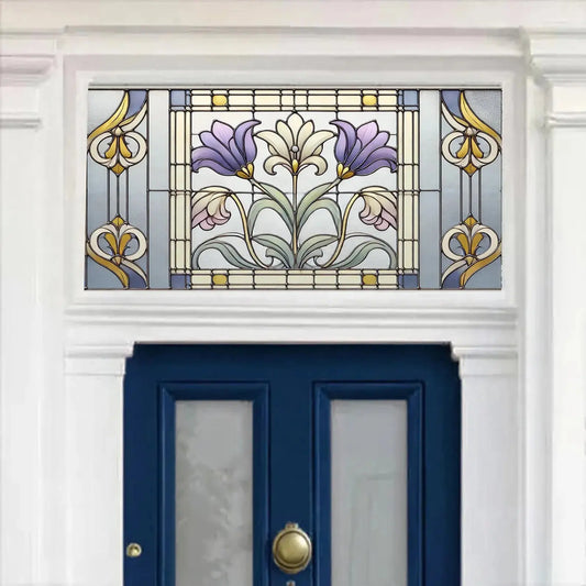 Curinga Transom Window Privacy Film – Stained Glass Art Nouveau Flowers