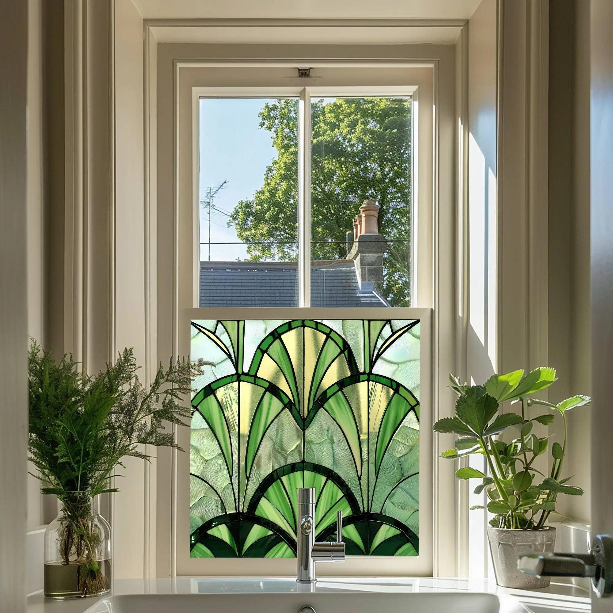 Green Art Deco Window Film - Aprica Stained Glass Privacy Window Film