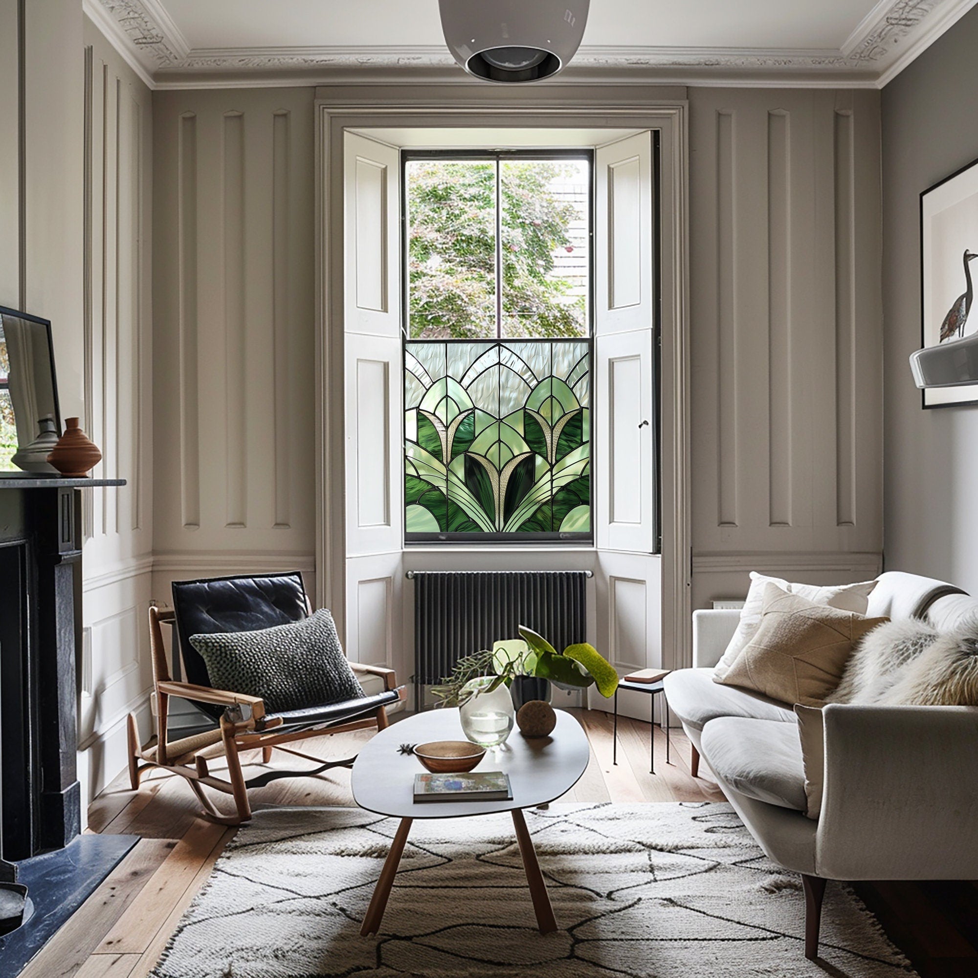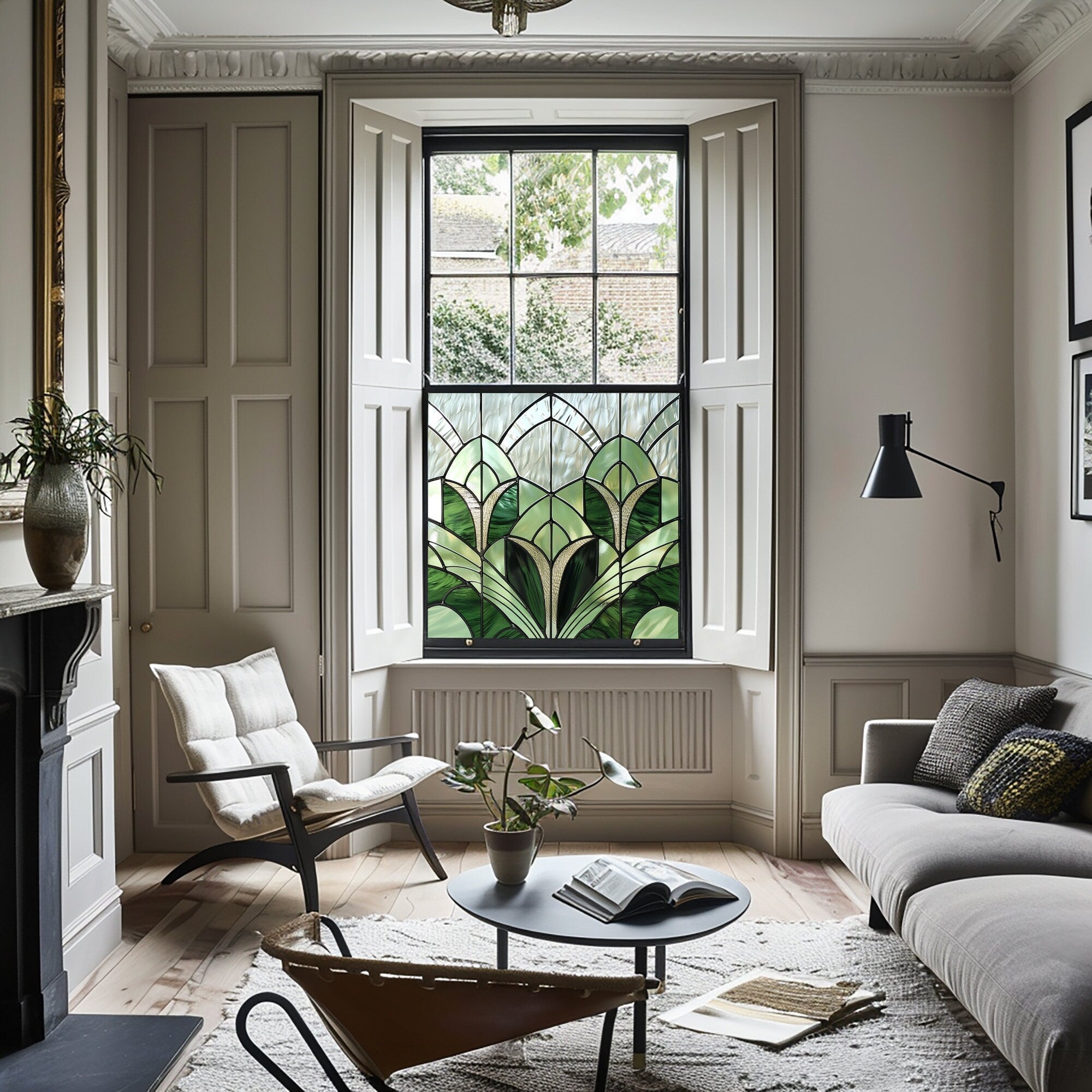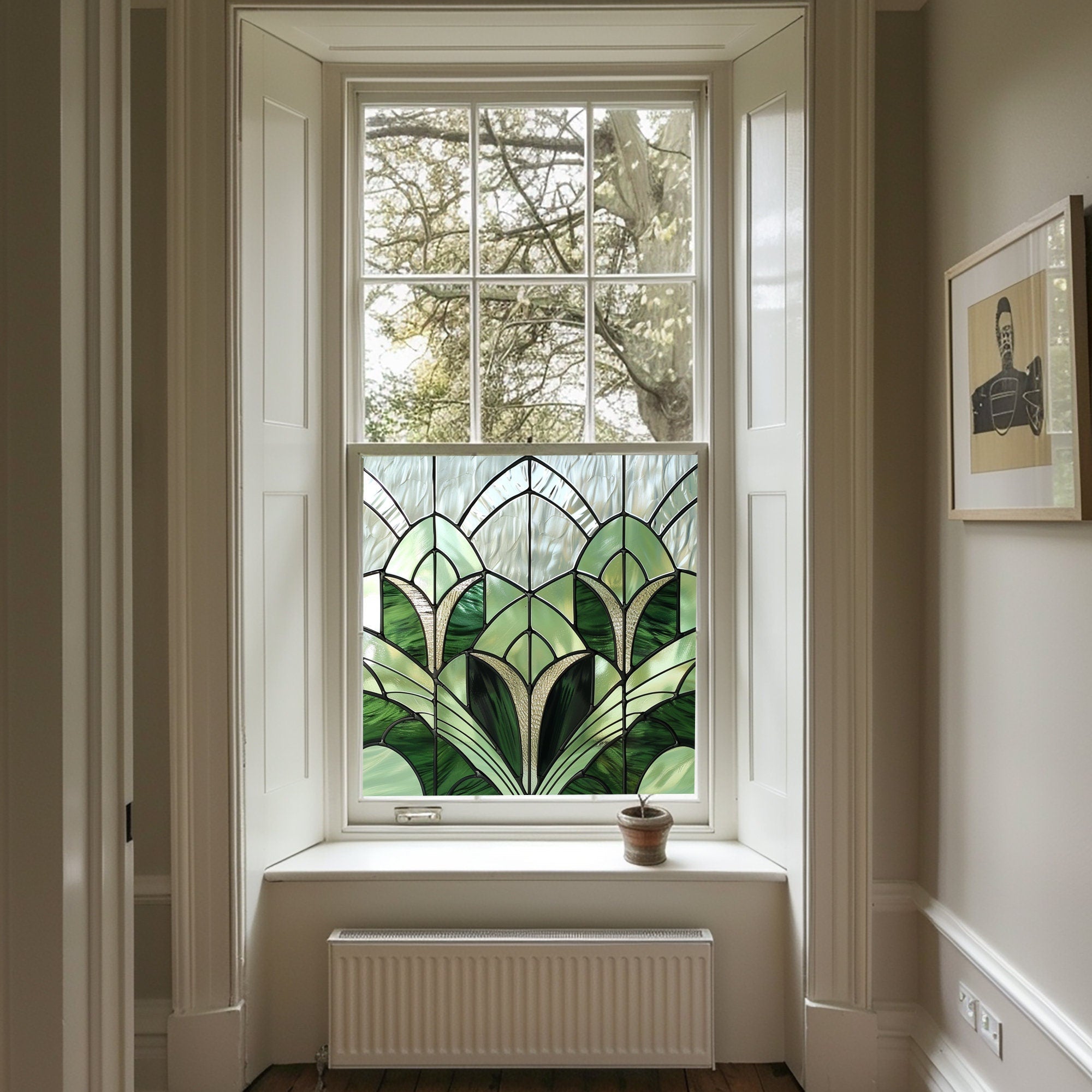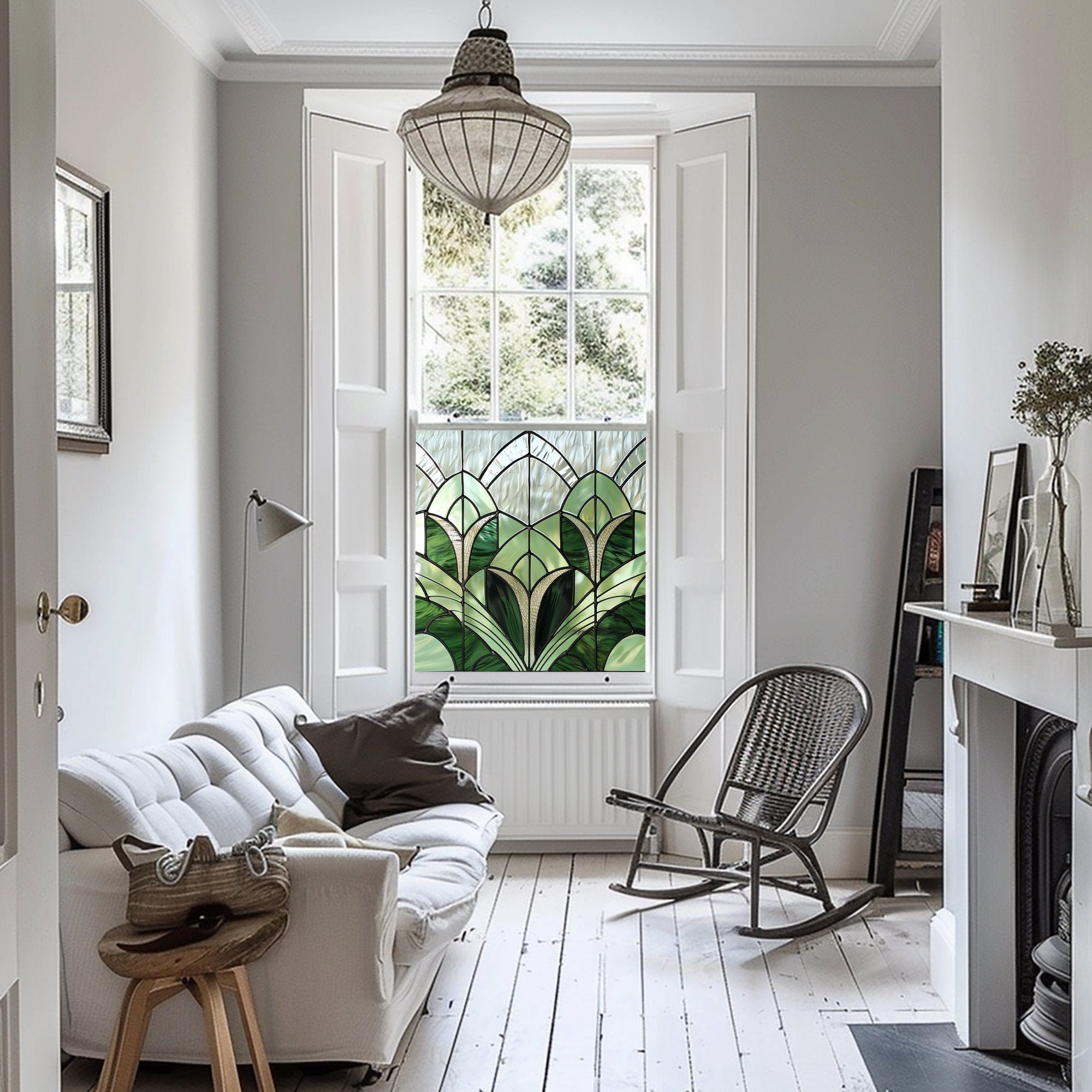Artena Stained Glass Privacy Window Film is designed to transform your windows into stunning works of art. By mimicking the intricate designs of traditional stained glass, this film not only adds beauty to your space but also enhances your privacy. The vibrant green hues work effectively to filter sunlight, providing an inviting atmosphere while allowing natural light to brighten the room. Therefore, you can enjoy your home without compromising on style or privacy.