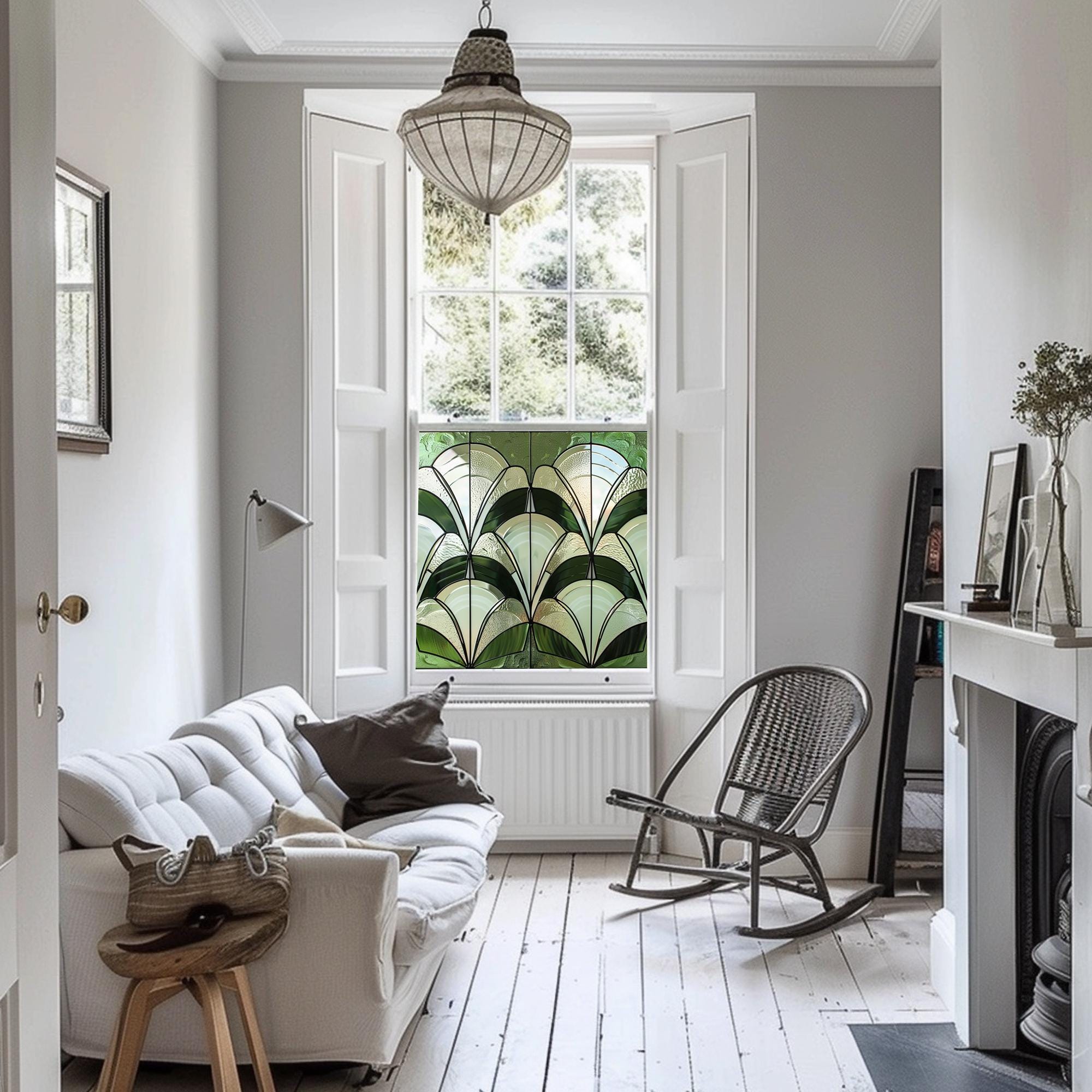 The Attimis Stained Glass Privacy Window Film is an exceptional choice for anyone looking to elevate the aesthetic appeal of their living spaces. This decorative window film features a striking green Art Deco design that mimics the look of real stained glass, making it not only functional but also a beautiful addition to any room. Because it maintains your privacy without sacrificing natural light, it strikes the perfect balance for modern homes.
