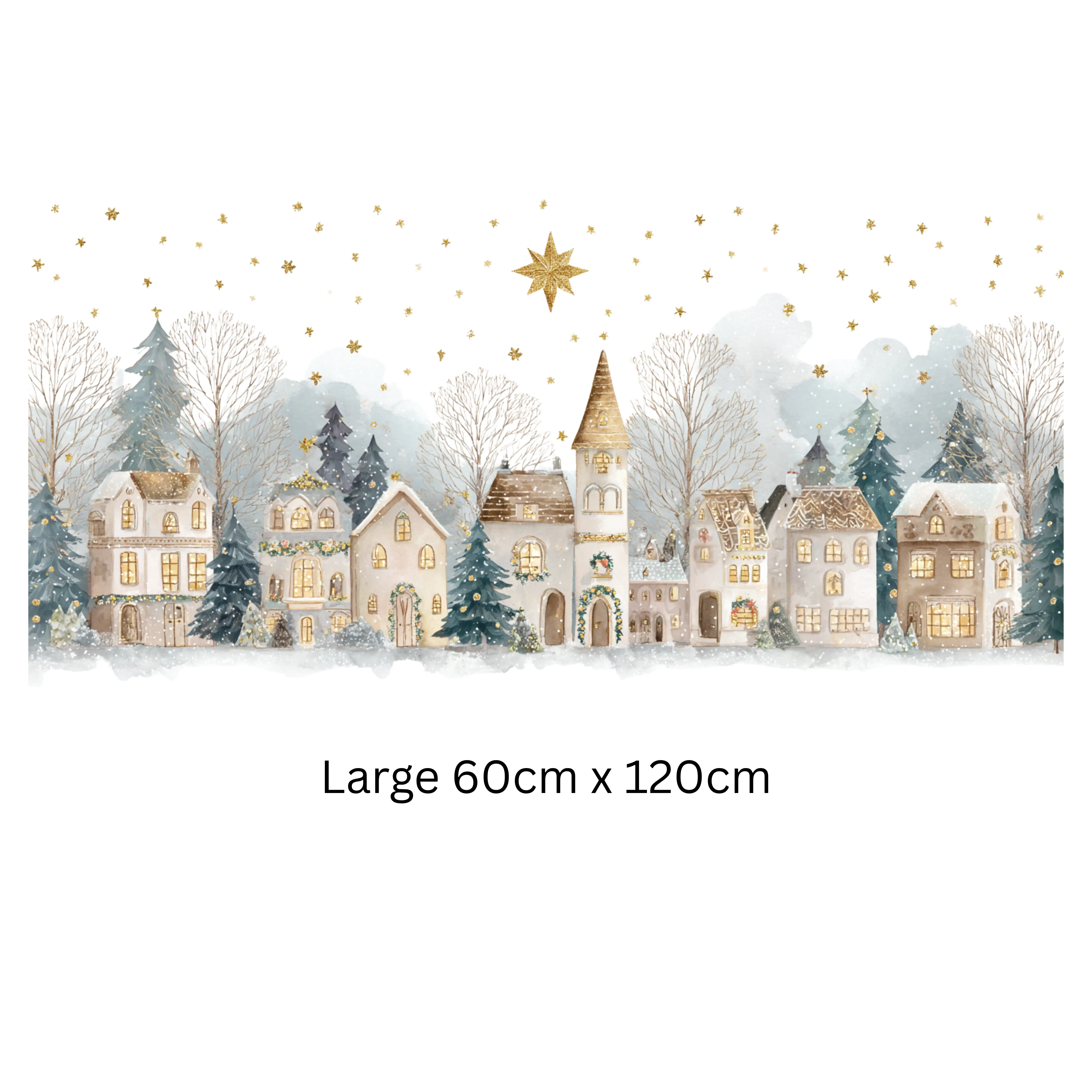 Double-Sided Christmas Window Sticker, Winter Village Reusable Decal